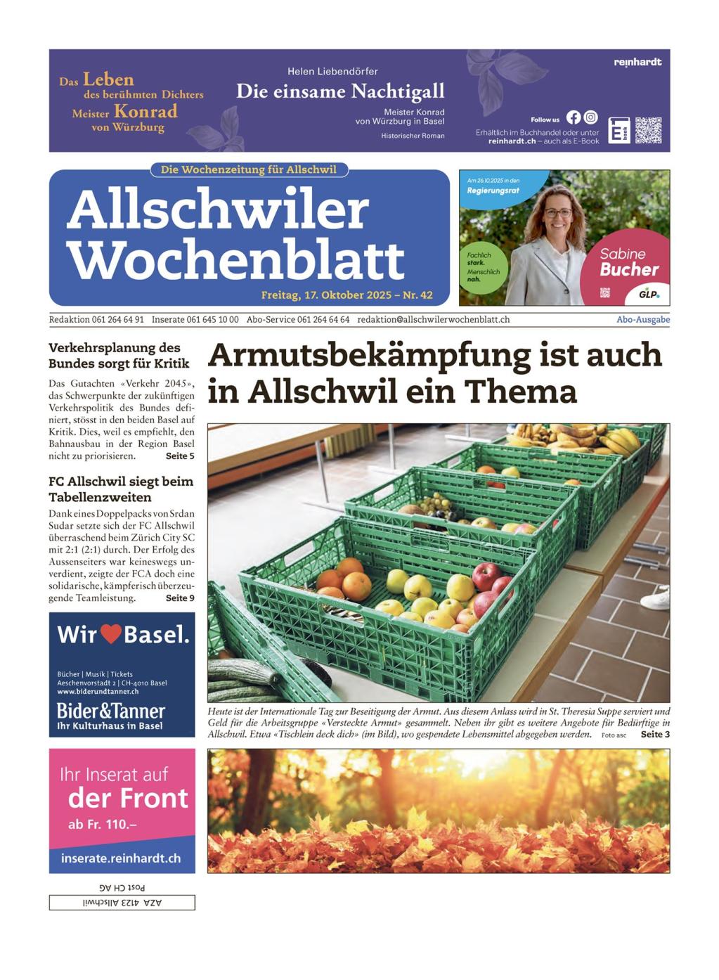 Lesen Sie hier die neuste Ausgabe des Allschwiler Wochenblatts.